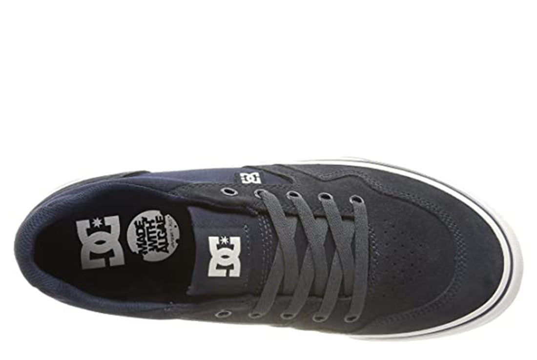 - Leather uppern- Toe cap with stitch detailn- Mesh liningn- Abrasion-resistant sticky rubber outsolen- DCs trademarked Pill Pattern treadn- Vulcanized construction for great board-feel and sole flexDC Rowlan Shoes for Men - Mens shoes with a suede and canvas upper in the quarter panel.