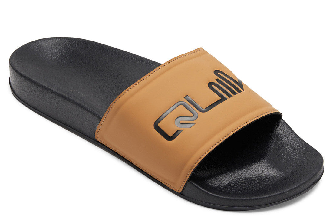 - Upper: Synthetic / Lining: Textile / Outsole: Eva - One- piece faux leather strap with soft polyester lining - One piece injection moulded footbed with heel cup and arch contours - Outsole designed for flexibility and gripQuiksilver Mens Sessions Slides - Slides for men featuring one piece injection moulded footbed with heel cup and arch contours, and an outsole designed for flexibility and grip.