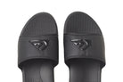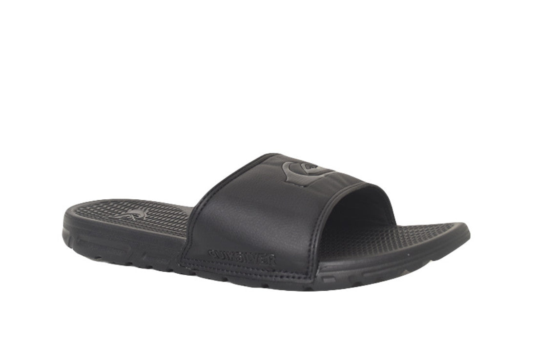 - Water friendly two piece adjustable hook and loop vegan leather upper with logo emboss, soft j ersey lining and thick padding - One piece in jection molded footbed with heel cup and archncontoursn- Engineered outsole design for flexibility and supportSlider sandals for men made with a water-friendly two-piece adjustable hook and loop closure faux leather upper, with an embossed logo, and a soft jersey lining and thick padding.