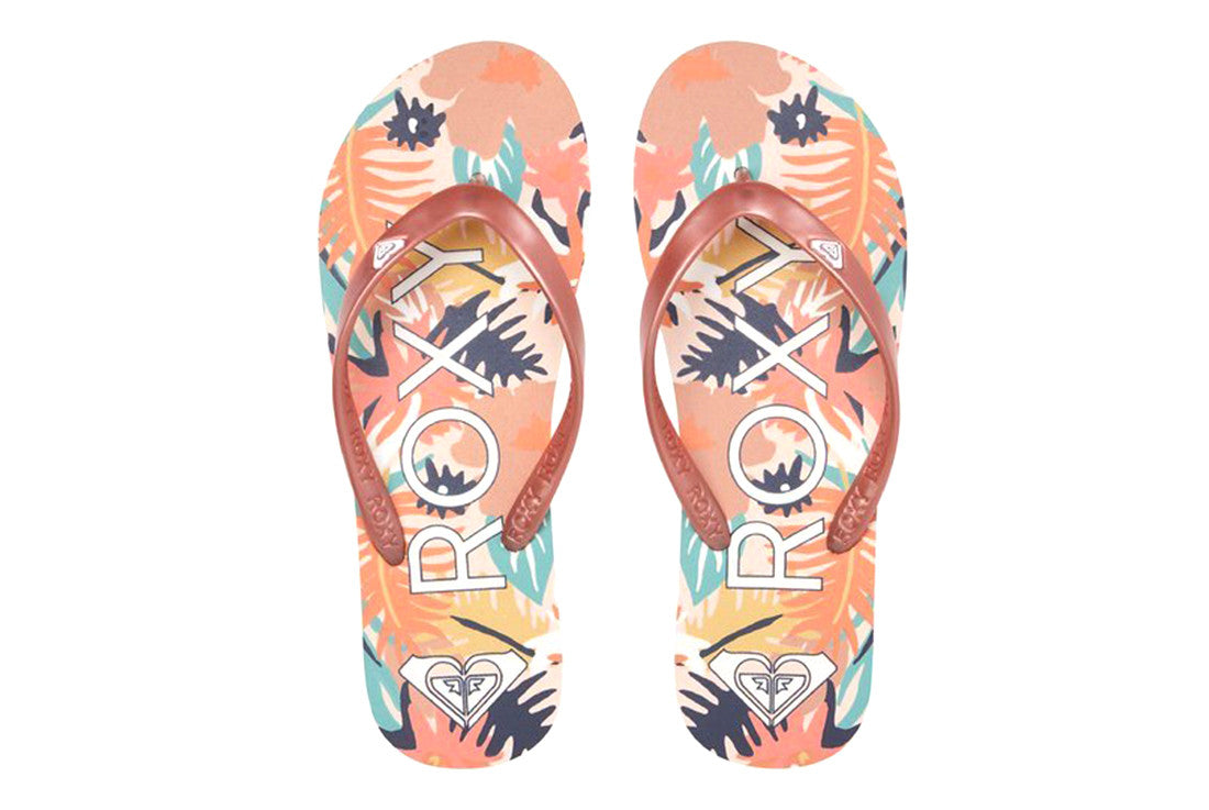 - Product Type: Sandal - Upper: Soft two tone TPR with molded heart logo - Footbed: Dula density EVA with graphic - Outsole: EVA with Roxy heritage artUpper: Soft Two Tone Tpr With Molded Heart Logo Footbed: Dual Density Eva With Graphic Outsole: Eva Upper: 100% Plastic, Outsole: 100% Eva
