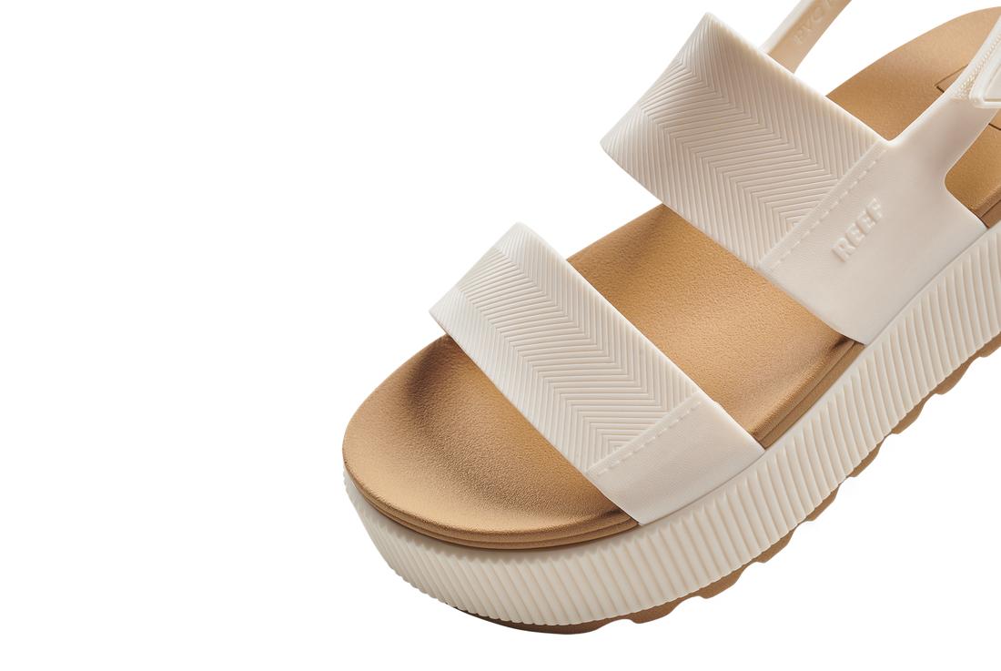 The footbed is super soft and bouncy with great rebound for all day comfort OUTSOLE Dual density lightweight compression molded EVA platform outsole with added lug design for extra durability and traction SUSTAINABILITY PVC free sandal